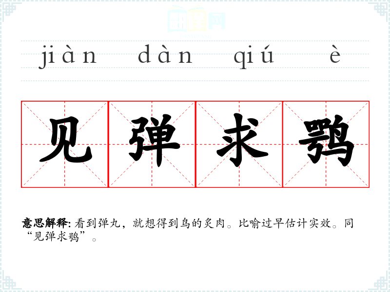 看到弹丸,就想得到鸟的炙肉。比喻过早估计实效。同“