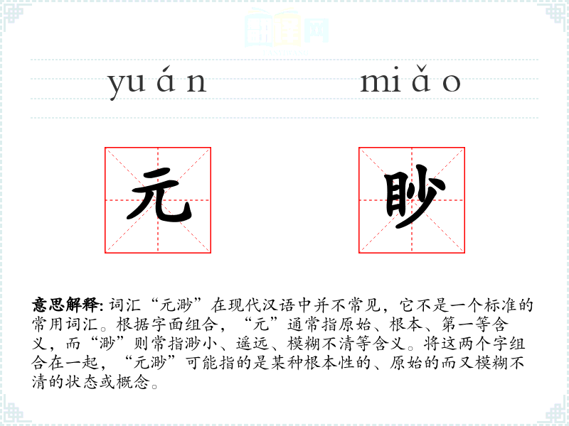 由于“元渺”不是一个常用词汇,其词源和历史演变难以考证。可能是由“元”和“渺”两个字组合而成,用以表达一种深层次的、难以捉摸的状态。