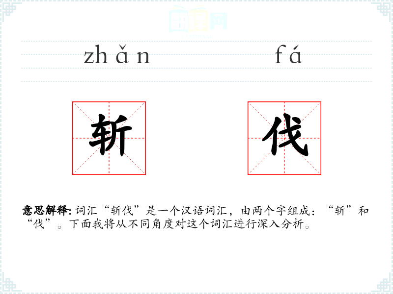 - 字面意思:“斩”通常指用刀剑等利器切断或砍断,“伐”则有砍伐、攻击的意思。