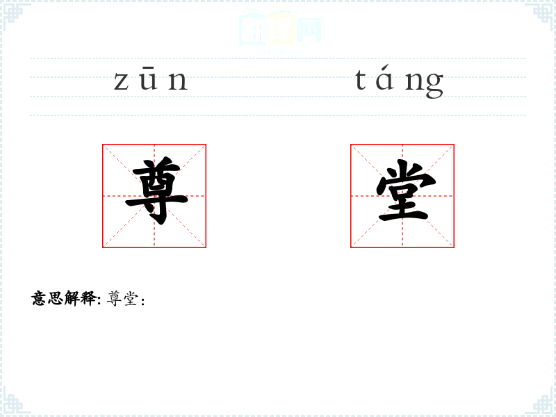 - 字面意思:尊,尊敬;堂,堂上,指家中长辈或尊贵的人。