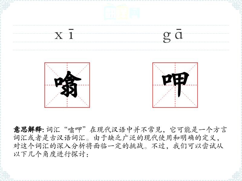 由于“噏呷”不是一个标准的现代汉语词汇,我们无法提供一个确切的字面意思和基本含义。它可能是某个方言中的词汇,或者是古汉语中的词汇,具体含义需要结合具体语境来解释。