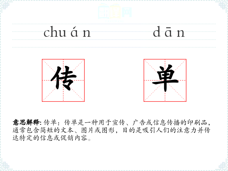 "传单"的意思解释、传单是什么意思由翻译网汉语词典查词提供。