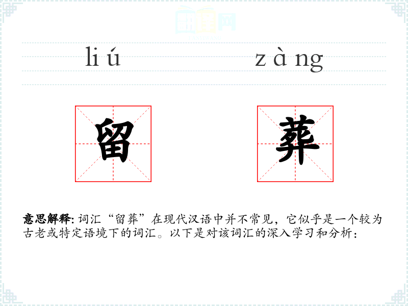 词汇“留葬”在现代汉语中并不常见,它似乎是一个较为古老或特定语境下的词汇。以下是对该词汇的深入学*和分析: