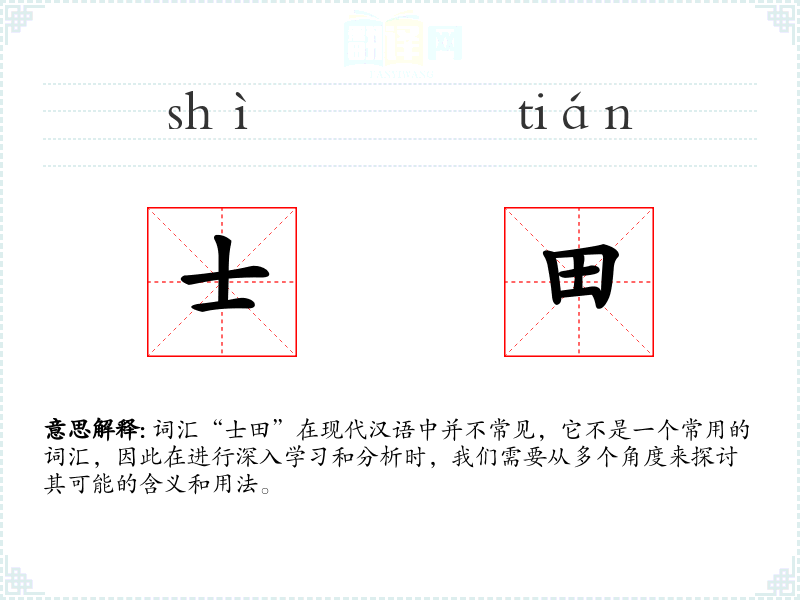 词汇“士田”在现代汉语中并不常见,它不是一个常用的词汇,因此在进行深入学*和分析时,我们需要从多个角度来探讨其可能的含义和用法。