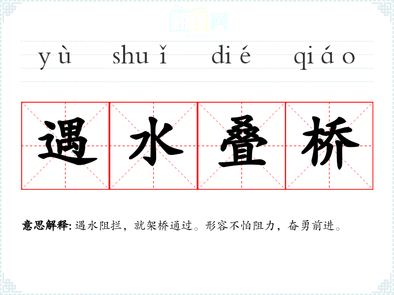 遇水阻拦,就架桥通过。形容不怕阻力,