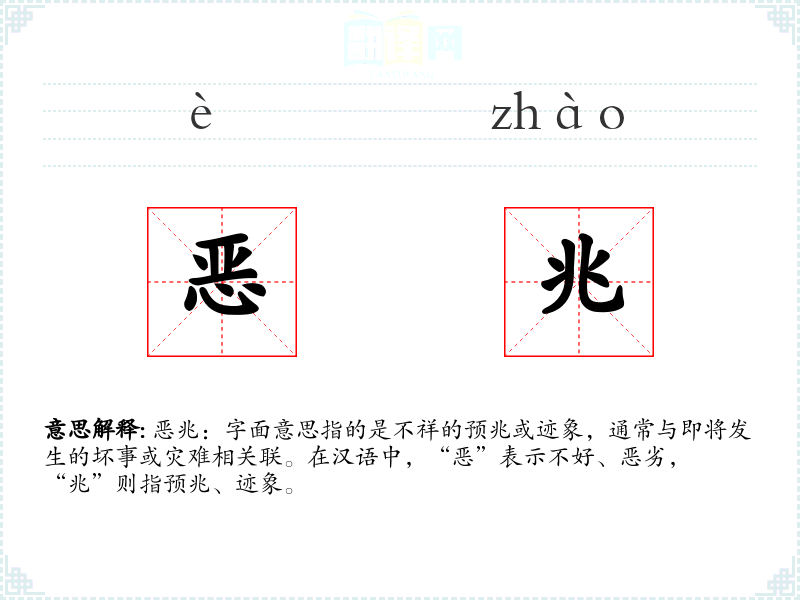 - 反义词:吉兆、好兆头、祥瑞