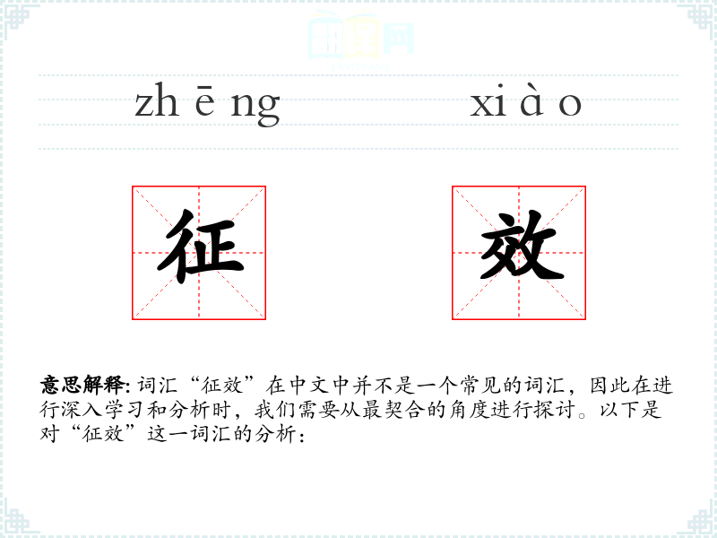 词汇“征效”在中文中并不是一个常见的词汇,因此在进行深入学习和分析时,我们需要从最契合的角度进行探讨。以下是对“征效”这一词汇的分析: