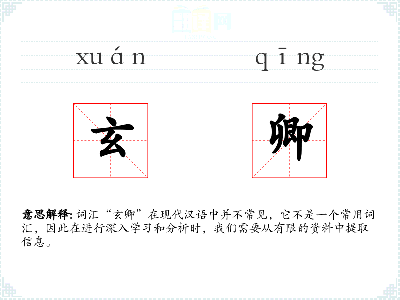 词汇“玄卿”在现代汉语中并不常见,它不是一个常用词汇,因此在进行深入学*和分析时,我们需要从有限的资料中提取信息。