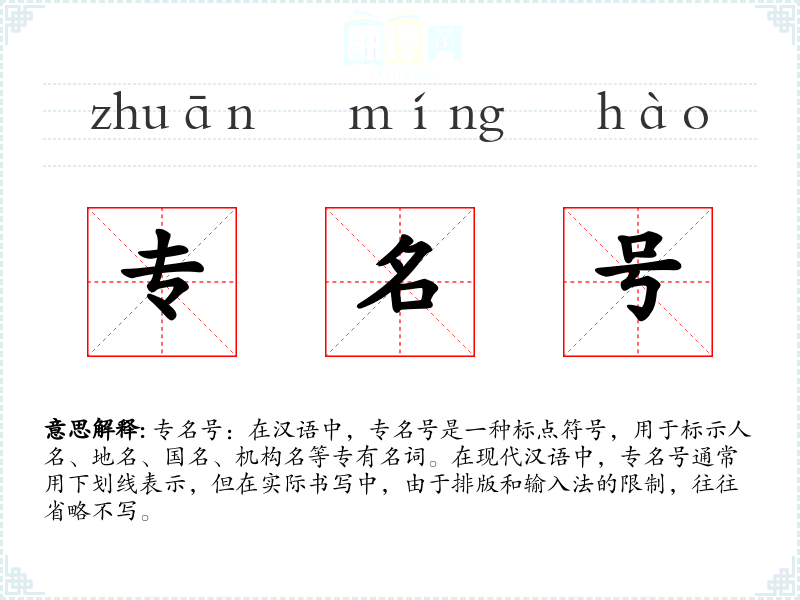 - 反义词:无(专名号本身是特定用途的标记,没有直接的反义词)
