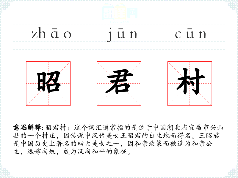 通过对“昭君村”的深入学,我们可以看到一个词汇如何承载着丰富的历史和文化信息。在语言学和表达中,理解和运用这样的词汇,不仅能够丰富我们的语言表达,还能够增进我们对文化传统的认识和尊重。