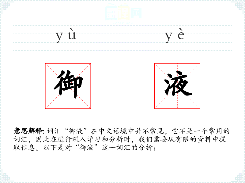 由于“御液”不是一个常用词汇,个人在生活中可能很少有机会直接使用或遇到这个词汇。