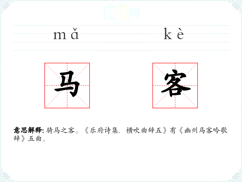 骑马之客。《乐府诗集.横吹曲辞五》有《幽州马客吟歌辞》五曲。