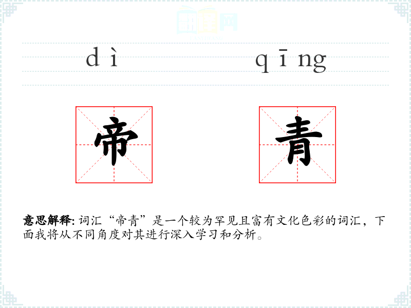 词汇“帝青”是一个较为罕见且富有文化色彩的词汇,下面我将从不同角度对其进行深入学*和分析。