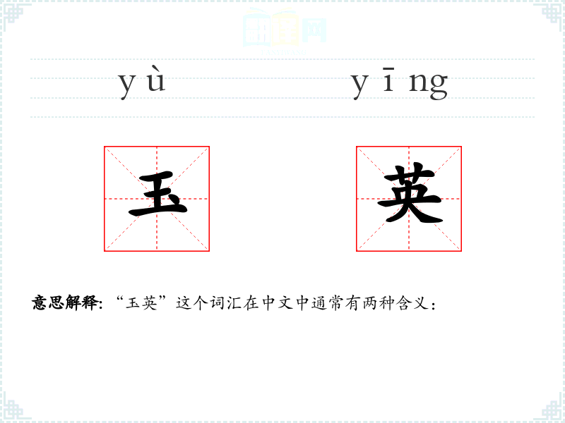 “玉英”这个词汇在中文中通常有两种含义: