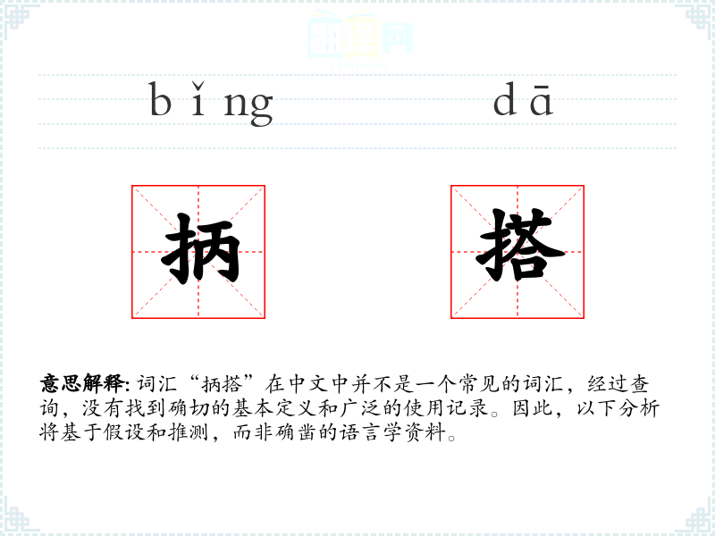 词汇“抦搭”在中文中并不是一个常见的词汇,经过查询,没有找到确切的基本定义和广泛的使用记录。因此,以下分析将基于假设和推测,而非确凿的语言学资料。