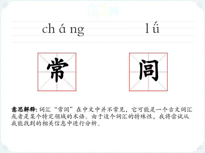 词汇“常闾”在中文中并不常见,它可能是一个古文词汇或者是某个特定领域的术语。由于这个词汇的特殊性,我将尝试从我能找到的相关信息中进行分析。