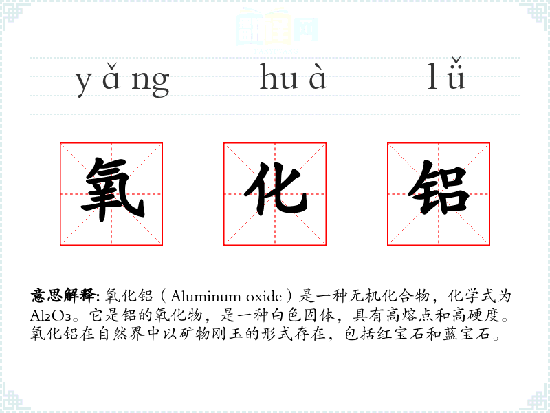 "氧化铝"的意思解释、氧化铝是什么意思由翻译网汉语词典查词提供。