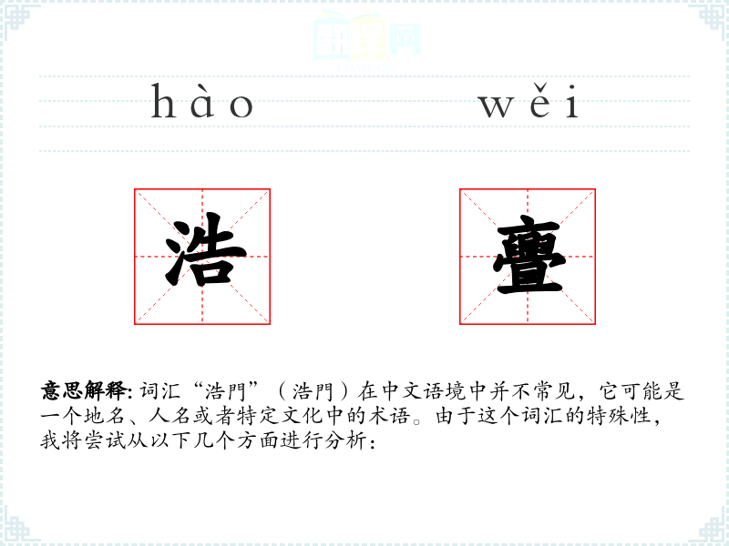 由于“浩門”不是一个常见的词汇,其词源和演变可能需要通过深入的历史文献研究来确定。它可能源自古代汉语,随着时间的推移,其意义和用法可能发生了变化。