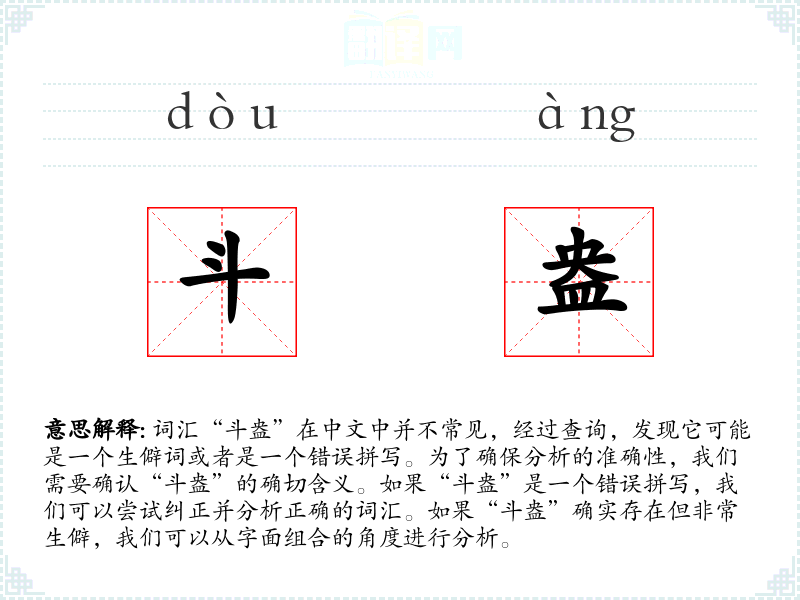 假设“斗盎”是一个生僻词,我们可以这样分析: