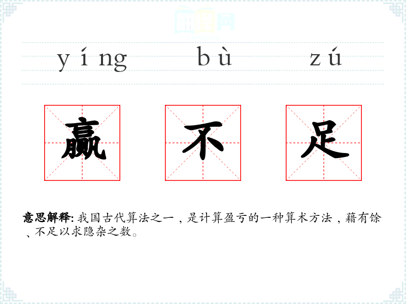 我国古代算法之一﹐是计算盈亏的一种算术方法﹐藉有馀﹑不足以求隐杂之数。