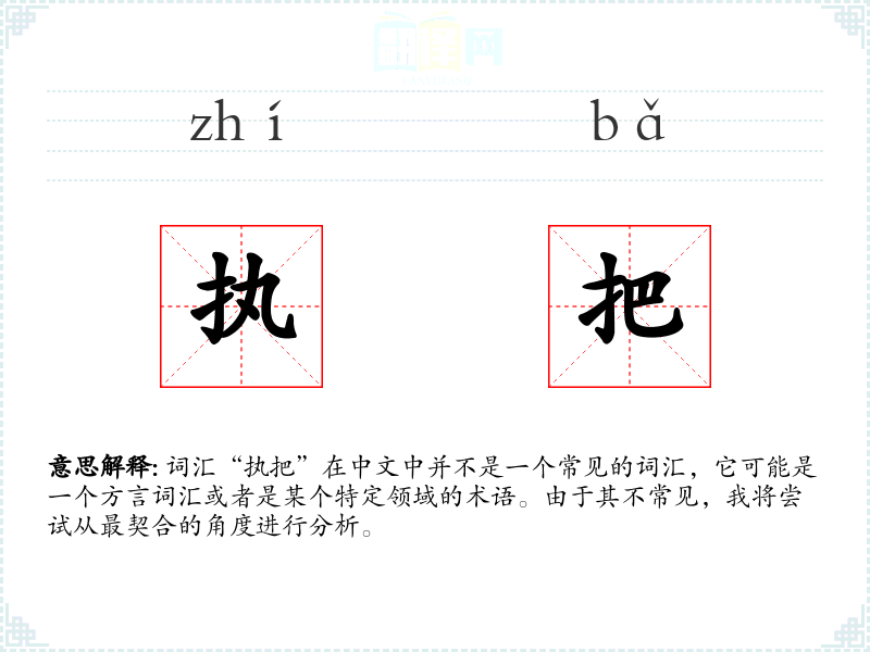 词汇“执把”在中文中并不是一个常见的词汇,它可能是一个方言词汇或者是某个特定领域的术语。由于其不常见,我将尝试从最契合的角度进行分析。