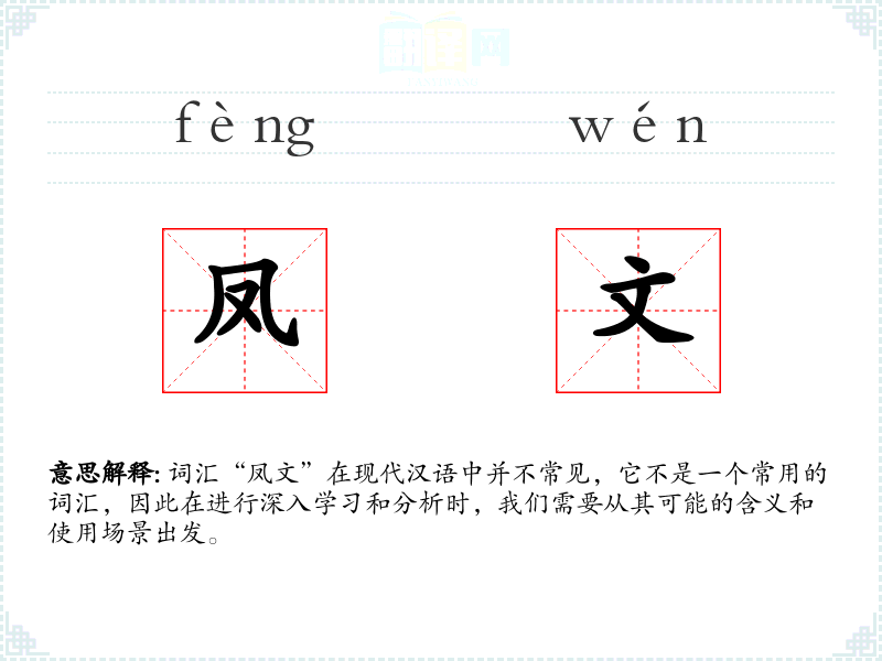 词汇“凤文”在现代汉语中并不常见,它不是一个常用的词汇,因此在进行深入学*和分析时,我们需要从其可能的含义和使用场景出发。