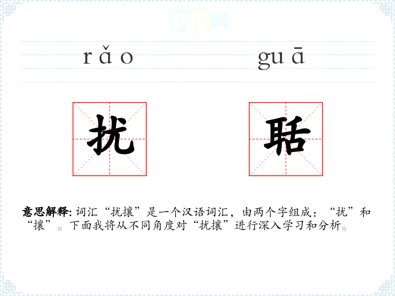 词汇“扰攘”是一个汉语词汇,由两个字组成:“扰”和“攘”。下面我将从不同角度对“扰攘”进行深入学*和分析。