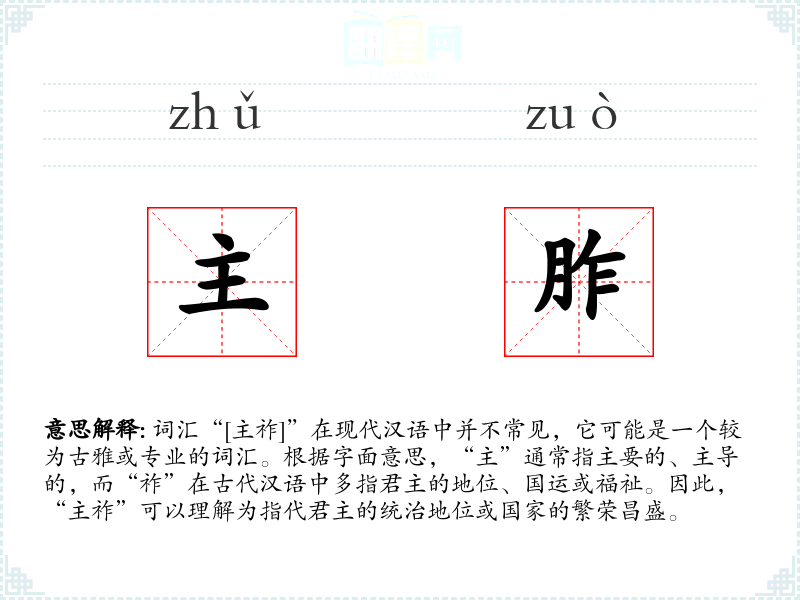 - 理解:“主祚”是一个富有历史和文化内涵的词汇,虽然在现代汉语中不常见,但它对于理解古代政治和社会结构具有重要意义。