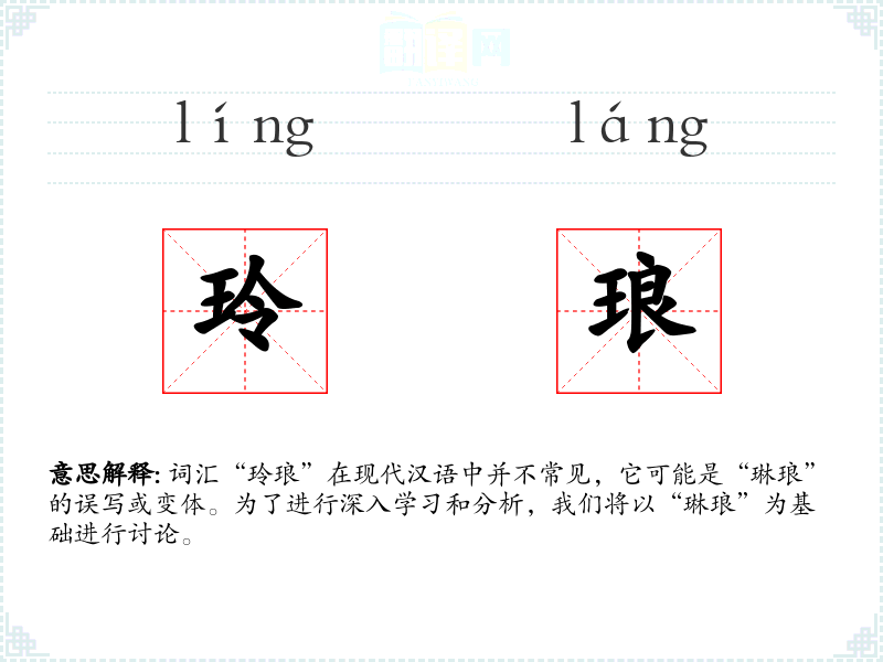 词汇“玲琅”在现代汉语中并不常见,它可能是“琳琅”的误写或变体。为了进行深入学*和分析,我们将以“琳琅”为基础进行讨论。