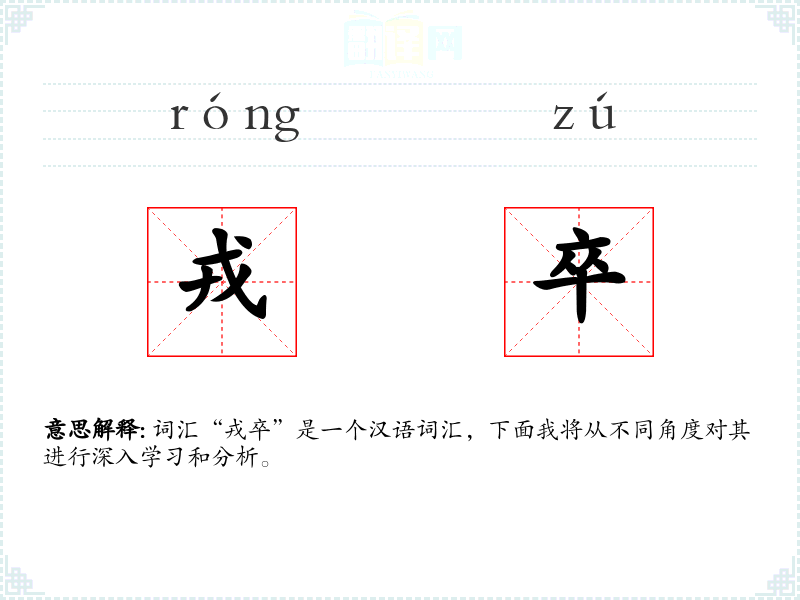 词汇“戎卒”是一个汉语词汇,下面我将从不同角度对其进行深入学*和分析。