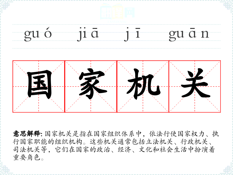在不同语言和文化中,国家机关的对应词汇可能有所不同,但其核心意义——行使国家权力的组织——是普遍存在的。