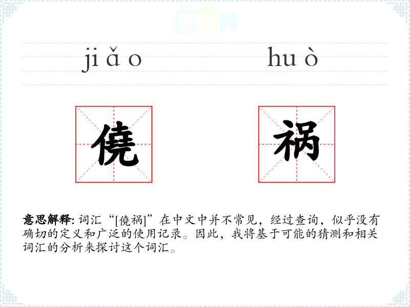 词汇“[僥祸]”在中文中并不常见,经过查询,似乎没有确切的定义和广泛的使用记录。因此,我将基于可能的猜测和相关词汇的分析来探讨这个词汇。