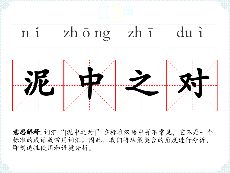 词汇“[泥中之对]”在标准汉语中并不常见,它不是一个标准的成语或常用词汇。因此,我们将从最契合的角度进行分析,即创造性使用和语境分析。