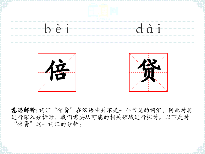 词汇“倍贷”在汉语中并不是一个常见的词汇,因此对其进行深入分析时,我们需要从可能的相关领域进行探讨。以下是对“倍贷”这一词汇的分析: