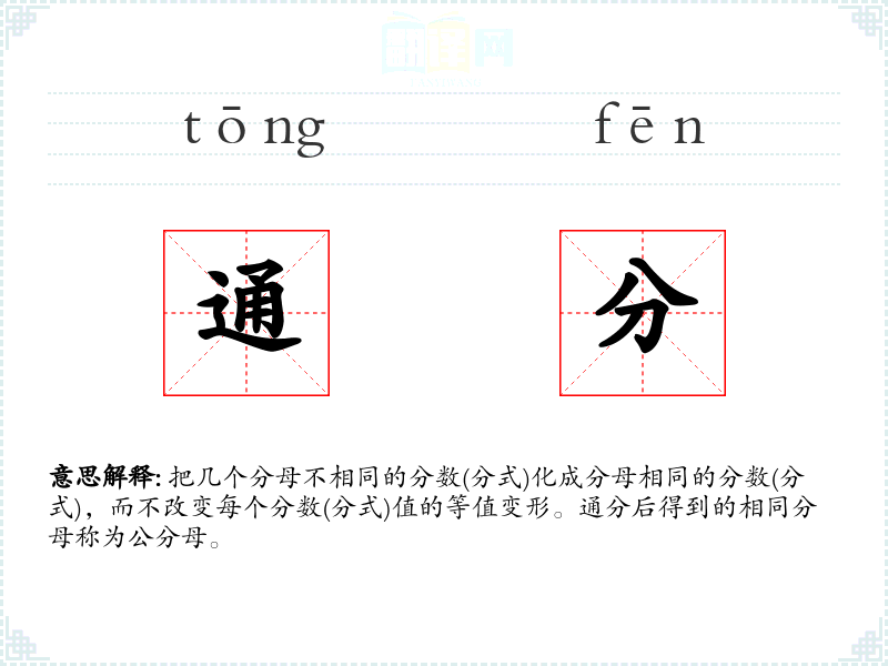 "通分"的意思解释、通分是什么意思由翻译网汉语词典查词提供。