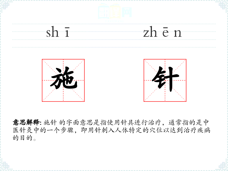 "施针"的意思解释、施针是什么意思由翻译网汉语词典查词提供。
