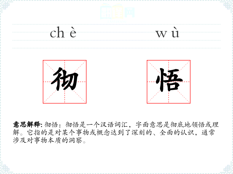 总结:彻悟是一个富有深度的词汇,它不仅指对事物的深刻理解,还蕴含着智慧和成长的意味。在语言学*和表达中,彻悟能够帮助我们更准确地传达对复杂概念的理解和认识。