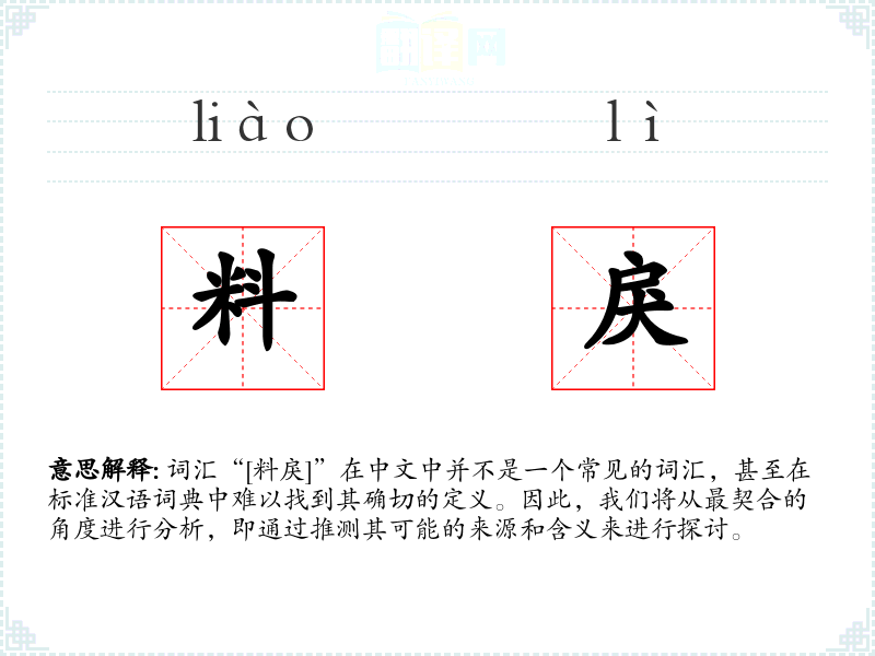 词汇“[料戾]”在中文中并不是一个常见的词汇,甚至在标准汉语词典中难以找到其确切的定义。因此,我们将从最契合的角度进行分析,即通过推测其可能的来源和含义来进行探讨。
