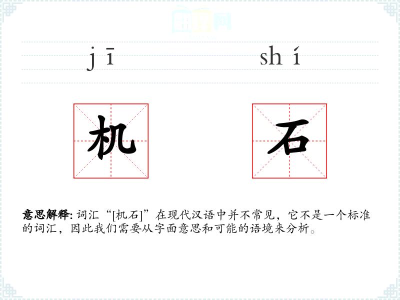 词汇“[机石]”在现代汉语中并不常见,它不是一个标准的词汇,因此我们需要从字面意思和可能的语境来分析。