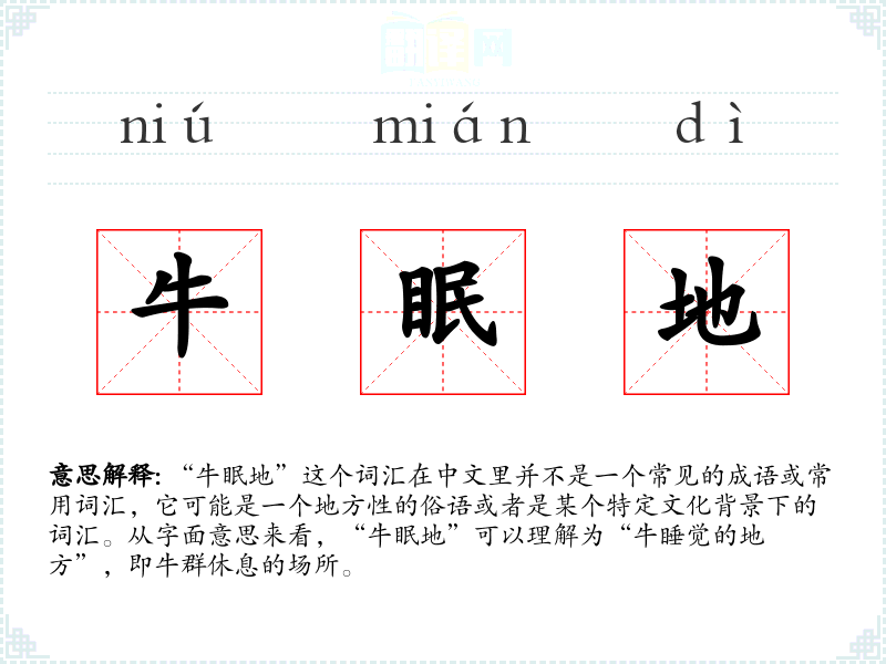 - 反义词:无(由于“牛眠地”不是一个常用词汇,很难找到直接的反义词)