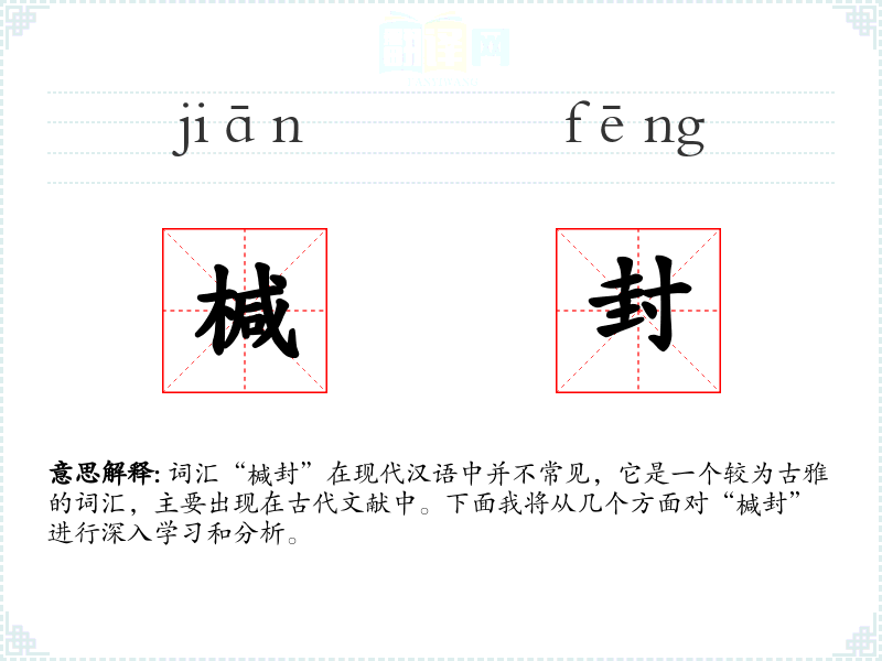词汇“椷封”在现代汉语中并不常见,它是一个较为古雅的词汇,主要出现在古代文献中。下面我将从几个方面对“椷封”进行深入学*和分析。