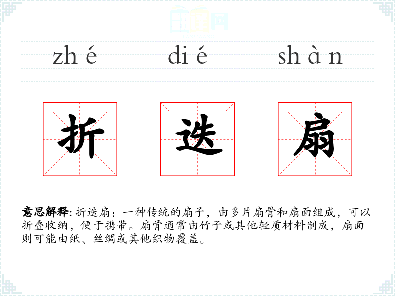 折迭扇作为一种文化符号和实用工具,不仅体现了传统工艺的美,也承载了丰富的历史和文化内涵。在学*语言和表达时,了解这样的词汇可以帮助我们更好地理解文化背景,丰富我们的语言表达。