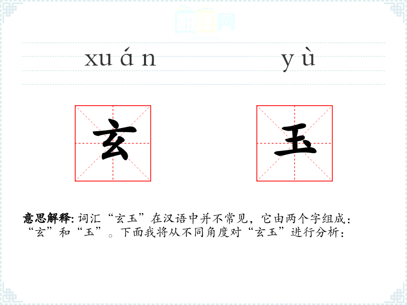 - 词源:“玄”字源自古代对深奥、神秘事物的描述,“玉”字则源自对这种珍贵矿石的称呼。
