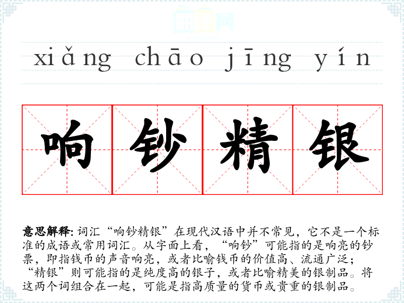 "响钞精银"的意思解释、响钞精银是什么意思由翻译网汉语词典查词提供。
