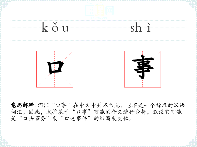 “口事”可能指的是通过口头方式传达的事务或**,强调信息的口头传递而非书面形式。