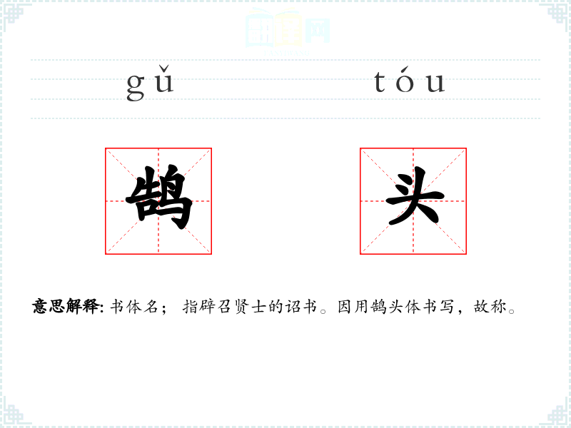 书体名; 指辟召贤士的诏书。因用鹄头体书写,故称。