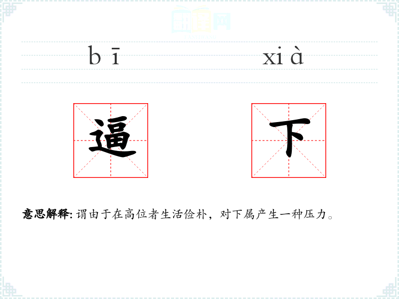 谓由于在高位者生活俭朴,对下属产生一种压力。