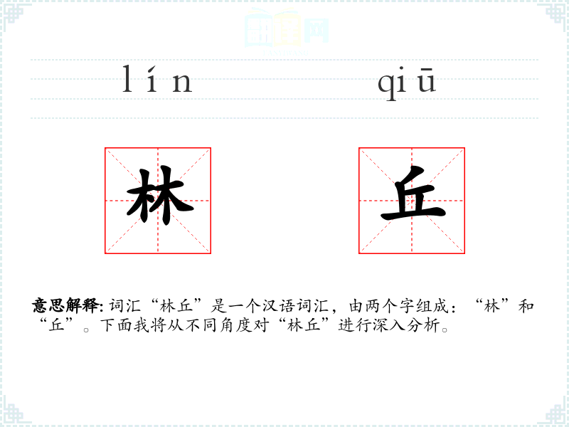 - 词源:“林”和“丘”都是古代汉语词汇,历史悠久。