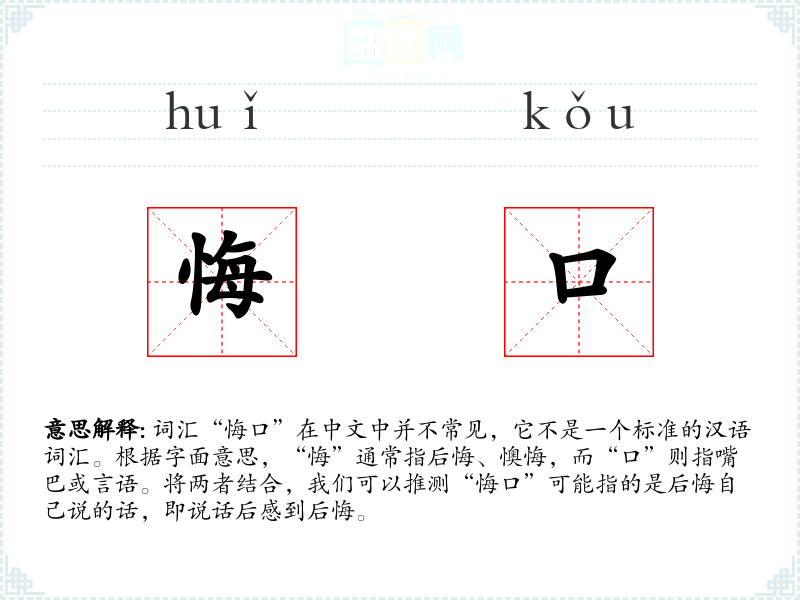 “悔口”可以解释为在说话之后感到后悔,可能是因为说错了话或说了不该说的话。