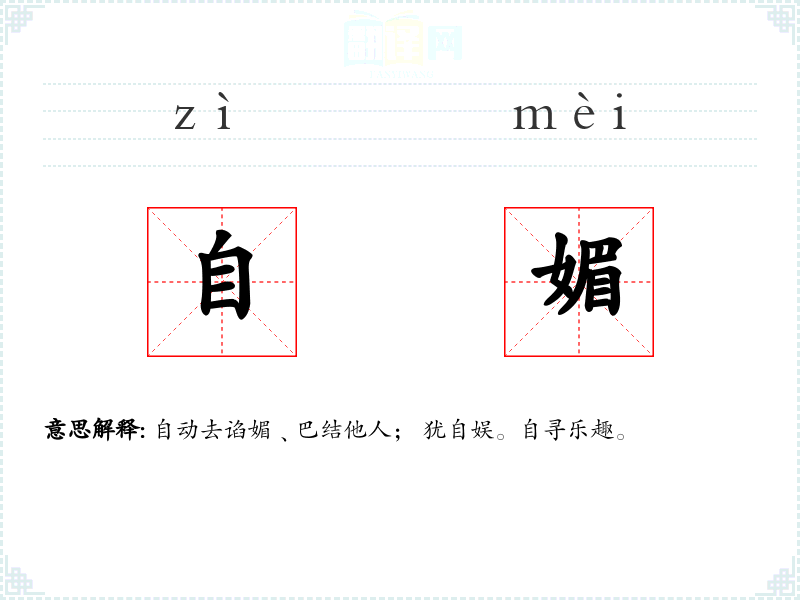 自动去谄媚﹑巴结他人; 犹自娱。自寻乐趣。